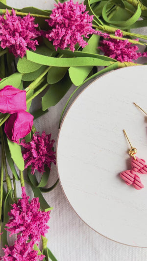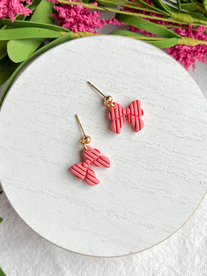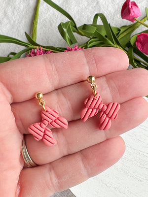 Pink Ribbed Coquette Bow Polymer Clay Earrings